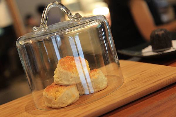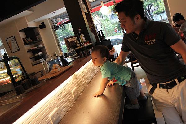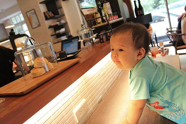當天現做的可露莉及scone就擺放在吧台上,可口的勾引著小風箏像小熊維尼看到蜂蜜般,企圖爬上餐桌去抓scone吃。
