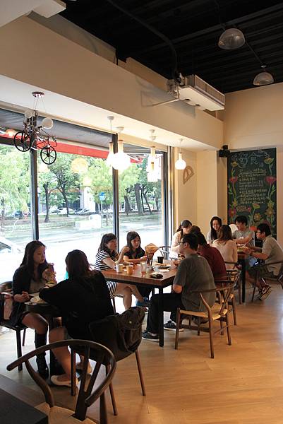 裡頭的用餐空間不太,沿著落地窗擺放著大大小小的方桌,隨客人人數任意組合方桌,就能就著陽光,佐笑聲,享受美食。