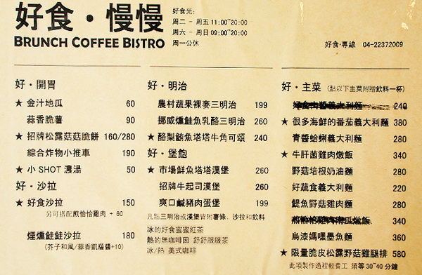 很久沒被美食這麼感動過了,雖然好食慢慢的價位高了些,但好味道值得多一點點的付出及等待,下次,一定要來嚐嚐那大受部落客們歡迎的週末早午餐